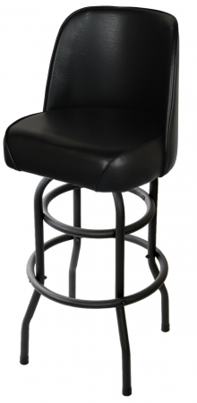 swivel mechanism offers 360 degree turning. 3" thick solid wood seat with 2" foam padding. Curved, foam padded, plywood backrest. Heavy vinyl upholstery with